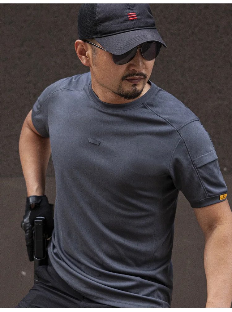 เสื้อยืดแขนสั้นผู้ชาย แบบยุทธวิธี กันแดด ระบายอากาศได้ดี